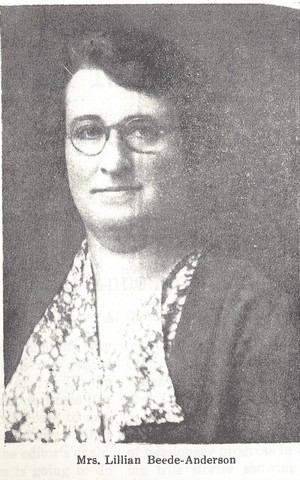 릴리안 엘리자베스 베데-앤더슨(Lillian Elizabeth Beede-Anderson, 1892-1934) Ⅰ. 기본사항 이름: Anderson, Lillian Elizabeth B. 생몰연도: 1892. 8. 15 – 1934. 11. 29 출신 및 소속: 미국 / 북장로회 한국선교기간: 1917. 9. 27 – 1934. 11. 29. 4. 연표 1892. 8. 15 미국 네브래스카 주 샤드론에서 출생 1896. 가족들이 캘리포니아로 이주 1911. 휘터고등학교 졸업 1915. 옥시덴탈대학 졸업 1917. 캘리포니아대학 석사