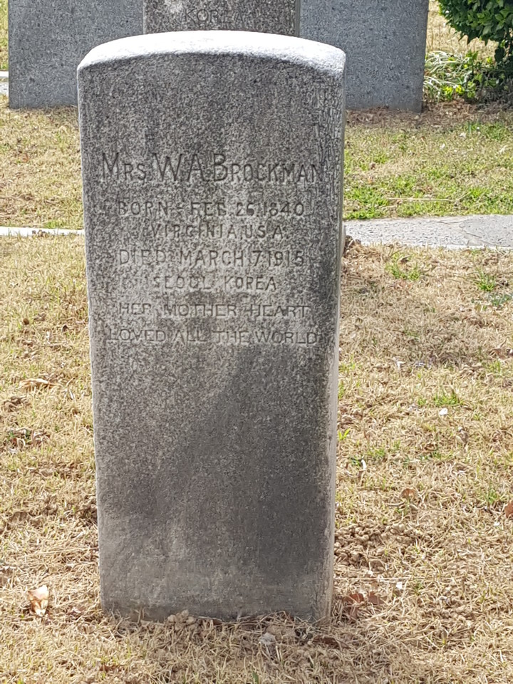 어머니 Brockman, Rosa Emory Wood(Mrs. W. A. Brockman(1840. 2. 26 - 1915. 3. 7 / 양화진 안장)