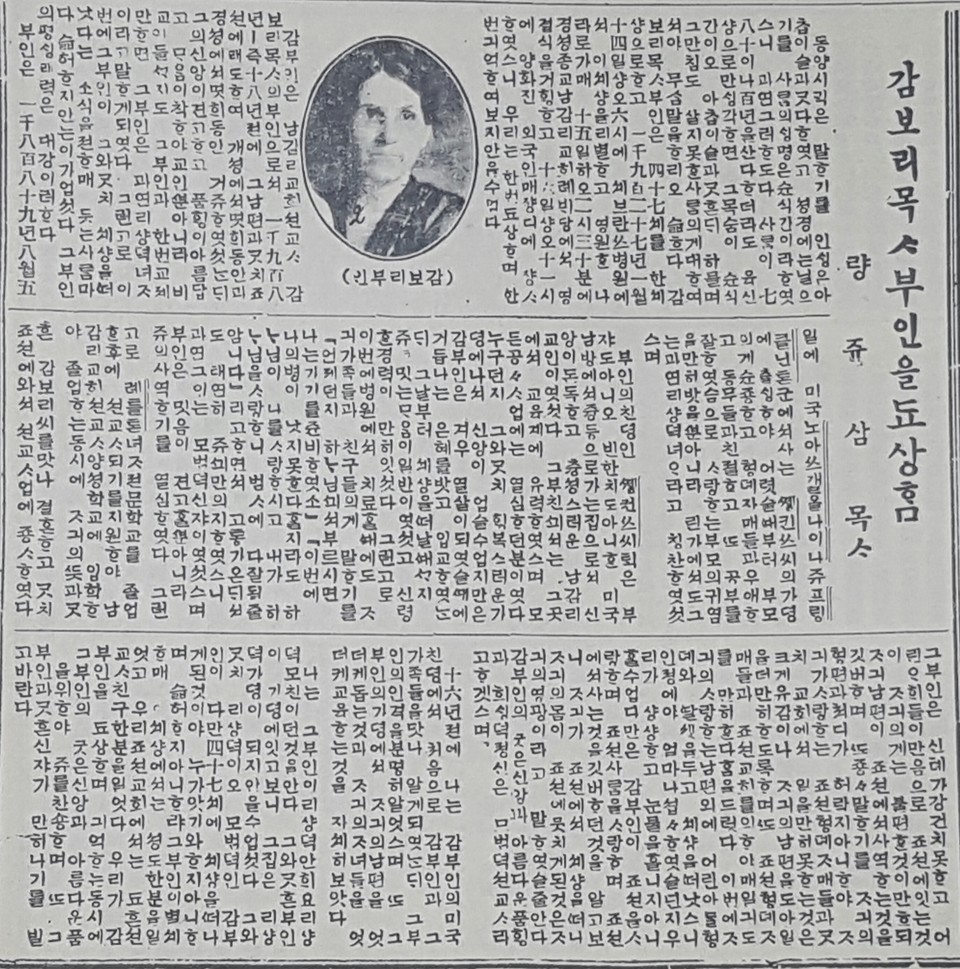 양주삼, “감보리 목사 부인을 조상함.” 《기독신보》 1927년 2월 2일자, 3면.