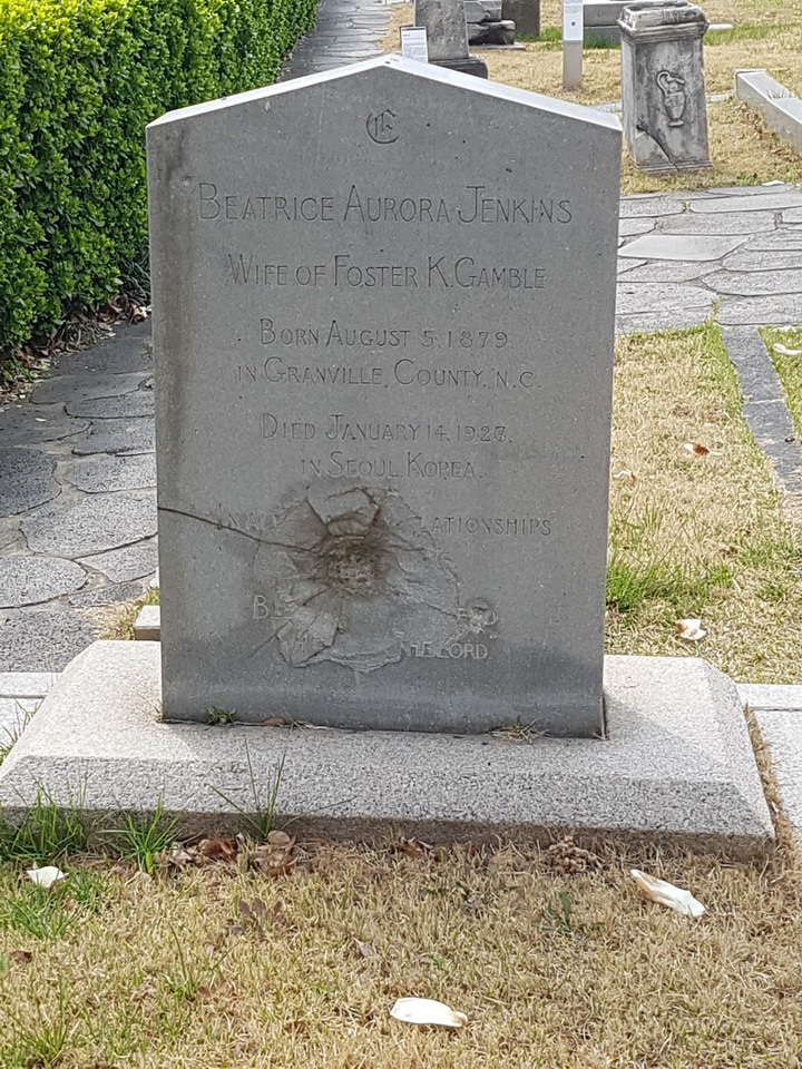 베아트리체 A. 젠킨스 갬블 선교사의 양화진 묘비