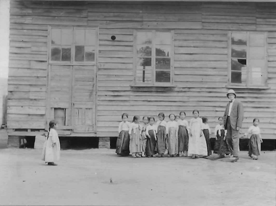 (맨 앞줄 우측에서 1번째 앉아있는 루스 선교사, 둘째줄 우측에서 1번째 매티 노블 &맨우측 끝 서있는 윌리엄 A. 노블 선교사)