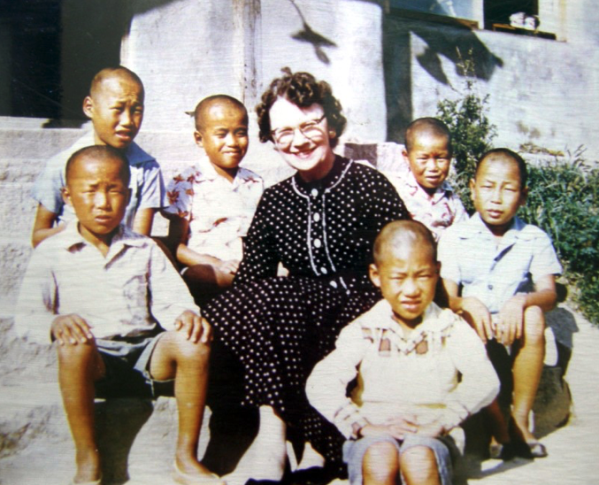 루스 아펜젤러 선교사가 한국선교 마지막 시기에 섬긴 은평천사원 원우들과 함께