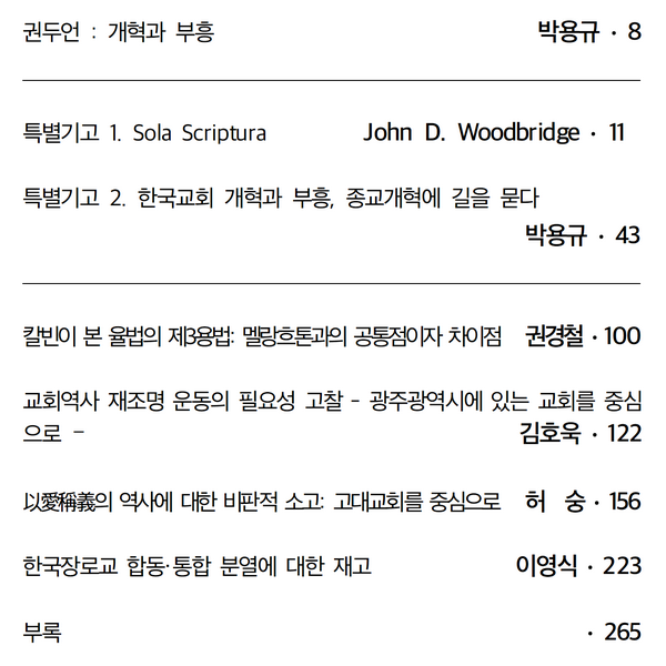 "오늘날 진정한 개혁은 놀라운 성령의 부으심, 영적각성이 있을 때 가능하다. 참된 부흥이 임하는 곳마다 놀라운 개혁이 나타났다. 개혁과 부흥은 그런 의미에서 같이 가야 한다. 마치 사도행전에서 말씀과 성령이 같이 간 것처럼 말이다. 종교개혁 500주년과 평양대부흥운동 110주년을 맞는 오늘날 우리 모두 한국교회 안에 ‘개혁’과 ‘부흥’이 임하게 해달라고 기도하자. 그리하여 이 땅에 진정한 종교개혁을 다시 회복하고 참된 부흥을 경험하는 우리 모두와 한국교회를 만들어 가자. 오 주여! 그 놀라운 성령의 부으심을 다시 부어주시고, 수치와 치욕과 조롱을 받는 한국교회가 영광의 교회로 거듭나는 진정한 개혁이 임하게 하옵소서! " - 박용규, 권두언 "개혁과 부흥" 중에서