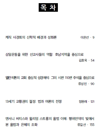 역사신학논총 34집에서는 한국복음주의역사신학회 소속 다섯 분의 논문이 게재되었다.